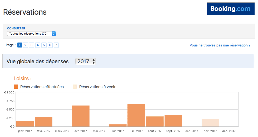 Pourquoi je fais toujours confiance à Booking après plus de 70 réservationsMes statistiques de réservation effectuées sur le site :